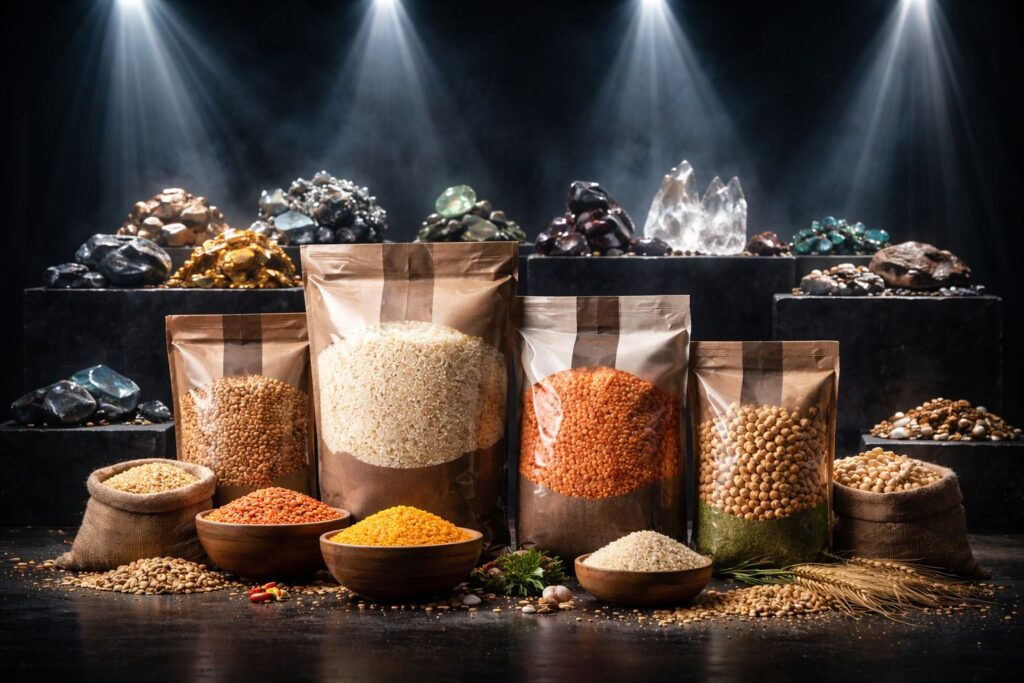 حبوب معبأة وأحجار كريمة – تعبيرية بواسطة خاص عن مصر التابعة للمنطقة الاقتصادية لقناة السويس، ضمن نطاق المطور الصناعي شركة التنمية الرئيسية (MDC)، الذراع التنموي للهيئة