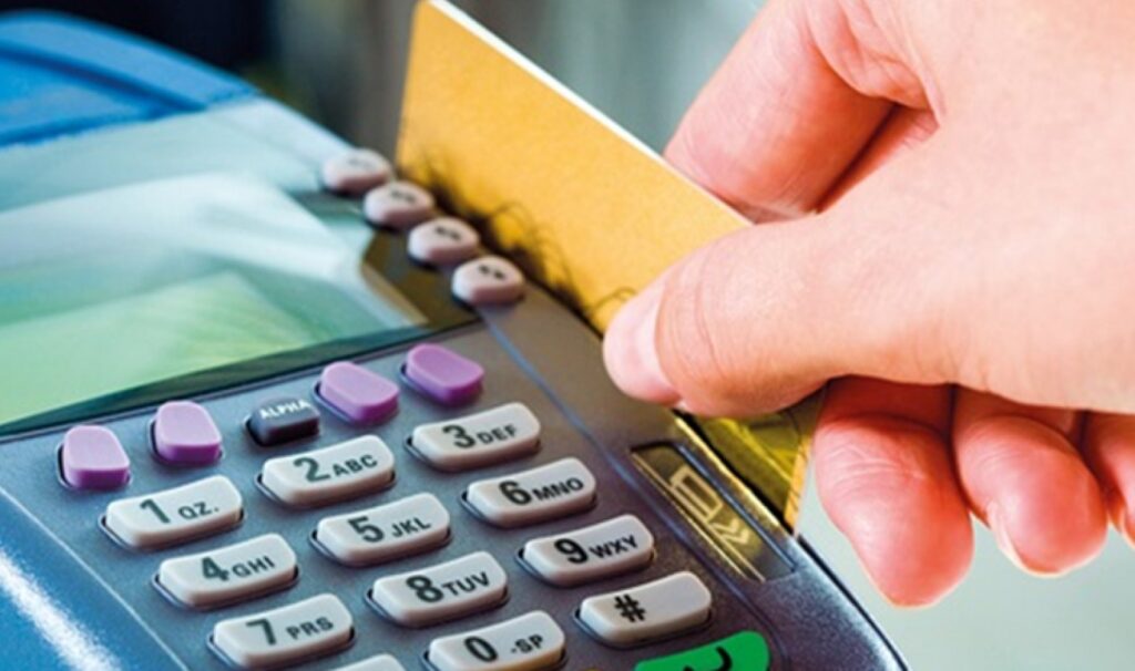 سيدة تحصل على الدعم التمويني ببطاقة الصرف المخصصة من أحد المنافذ التموينية – تعبيرية